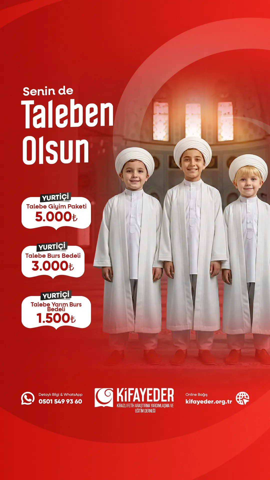 Amacımız, medreselerimizde hafızlık ve İslami ilimler eğitimi alan talebelerin aylık eğitim giderlerine destek olmak; bu vesileyle bir hafızın, bir ilim ehlinin yetişmesine katkı sunmak isteyen hayırseverlerimize kalıcı bir iyilik kapısı aralamaktır. Yapılan her destek, ilim yolunda yürüyen bir talebenin eğitimine güç katmaktadır. Bizler inanıyoruz ki her Müslüman evladı, imkânları ne olursa olsun dinini doğru ve sağlam kaynaklardan öğrenebilmelidir. Maddi şartlar, coğrafi uzaklıklar veya kişisel zorluklar hiçbir gencin ilim yolundan geri kalmasına sebep olmamalıdır. Kifayeder, hiçbir ayrım gözetmeden İslami eğitim almak isteyen talebelere bu imkânı sunmayı kendisine bir sorumluluk olarak görmektedir.