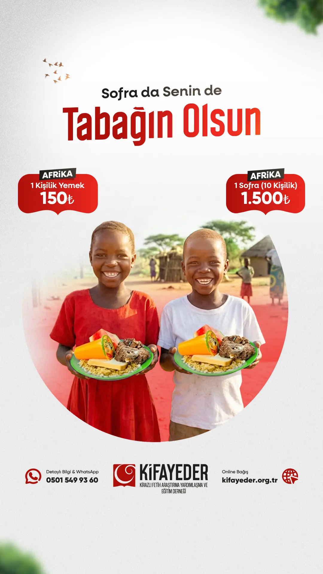 Yemek, insan hayatının en temel ihtiyaçlarından biridir ve temiz, sağlıklı gıdaya ulaşmak herkes için doğal bir haktır. Bizler günlük hayatımızda sıcak bir yemeğe kolayca erişebilirken, Afrika’nın birçok bölgesinde kuraklık ve derin yoksulluk nedeniyle bu imkân ne yazık ki herkes için mümkün değil, Kifayeder, bu zorlu şartlar altında yaşayan ihtiyaç sahiplerine destek olmak amacıyla Afrika’nın yoksul bölgelerinde iftar ve yılın her günü sıcak yemek ikramları gerçekleştirmektedir.